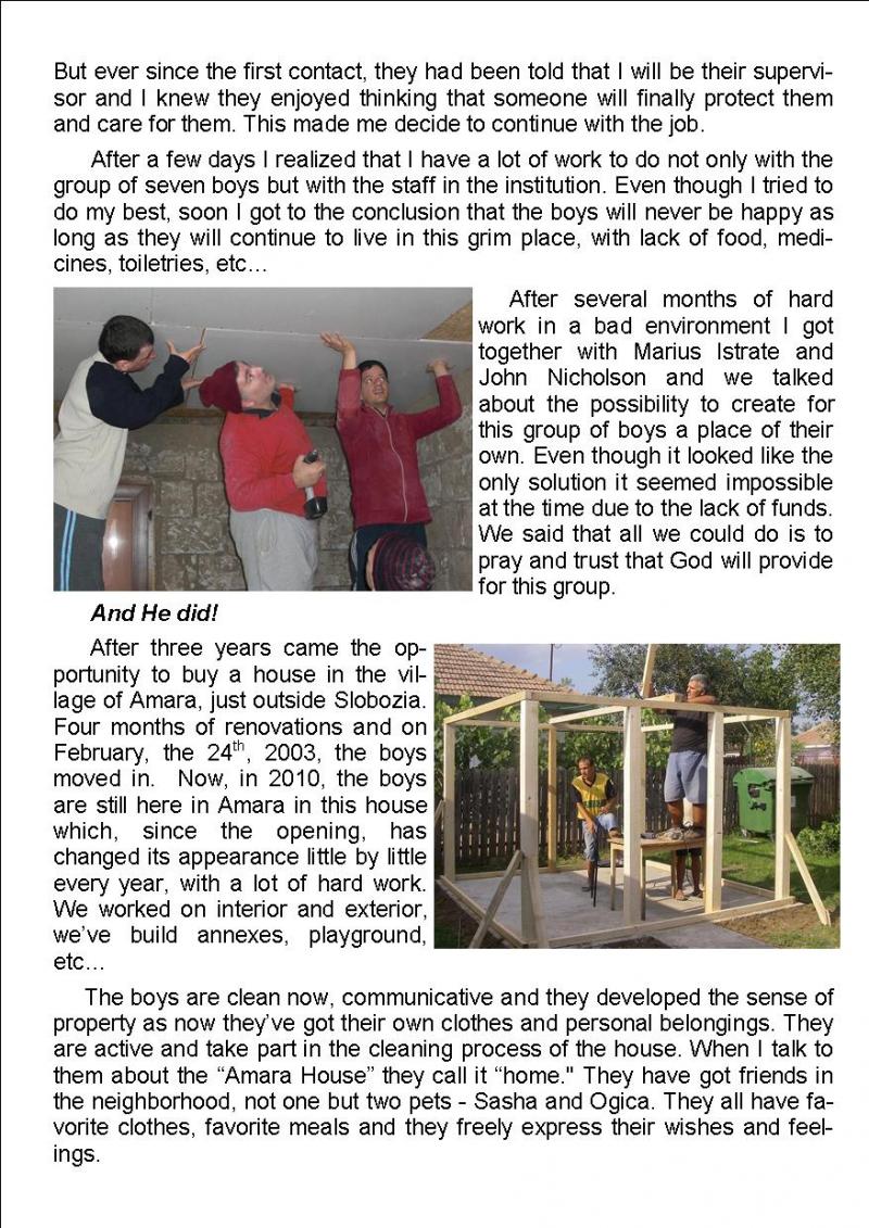 Ten years ago, during one of our annual trustees meeting in UK, someone came up with the ideea of sending newsletters to all the people who are faithfully supporting Fundatia (trough prayer, donations or both) and our work at Amara. We felt the need to keep in contact with you, to share with you news about the boys, about the house and to let you know how the money we receive from you is being spent.