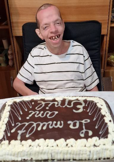 We thank God everyday that he is still alive as the statistics say that people suffering of this syndrome usualy die before they get to the age of 20! He will soon turn 39!